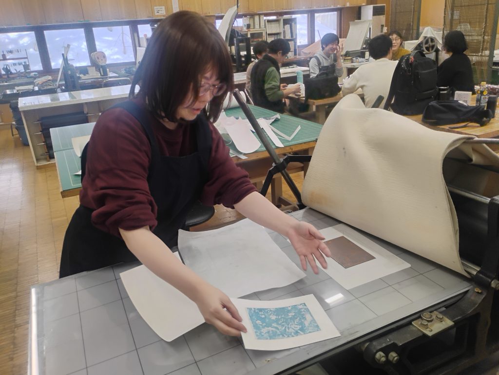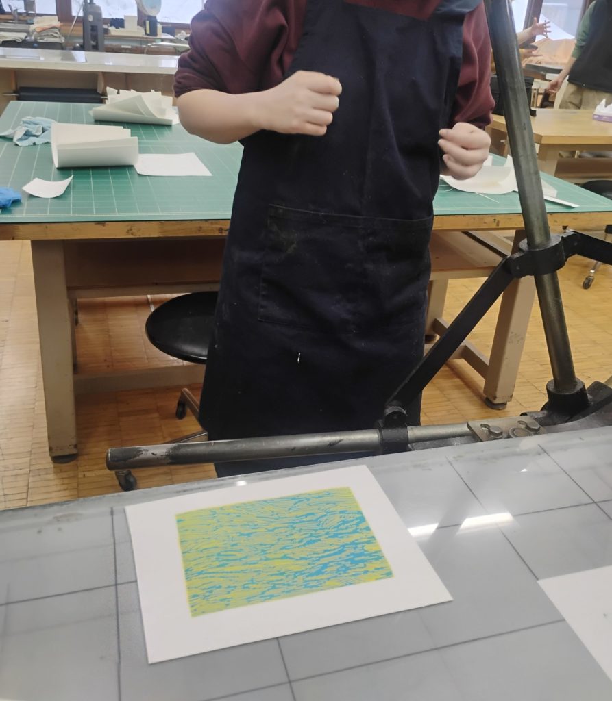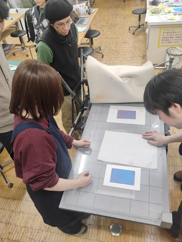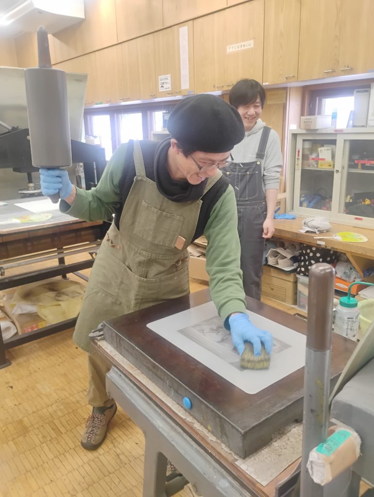 刷り上がった版やインクの香りが残る工房には、完成品だけでなく、制作の試行錯誤や小さな発見が積み重なった時間の重みが漂っていました。見学者や参加者が手伝ったり間近で刷りの技術を見たりしながら自然に生まれる役割ややり取りも含め、この日の学びや気づきは、その場だけで終わらず、それぞれの今後の制作へ静かにつながっていくように思われました。